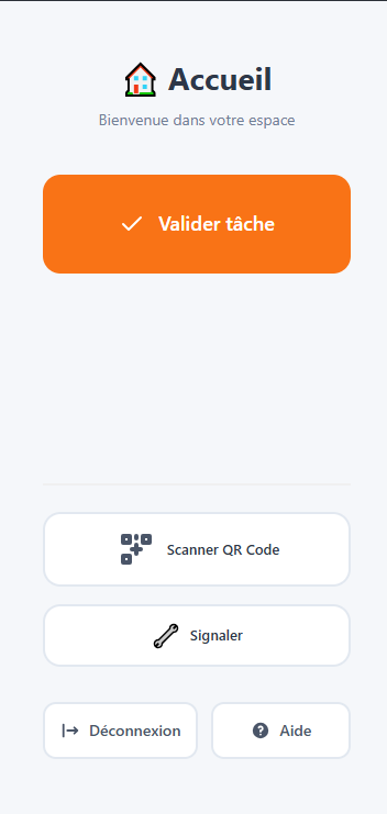 Le rôle Agent Nettoyage propose une interface et des accès adaptés aux tâches quotidiennes d’entretien, avec une approche simple, rapide et orientée terrain.