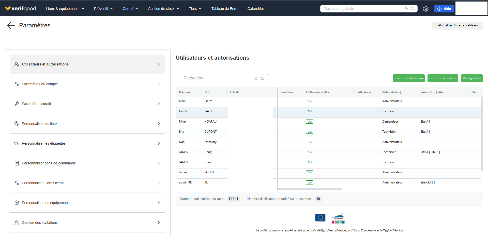 - Superviseur: Accès à la plupart des fonctionnalités, peut valider certaines actions mais ne peut pas gérer les utilisateurs ou la configuration système.