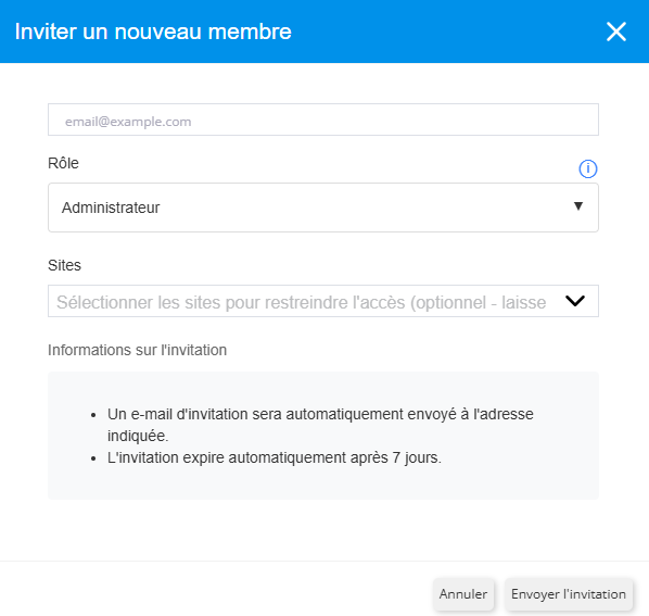 2. Inviter un nouvel utilisateur