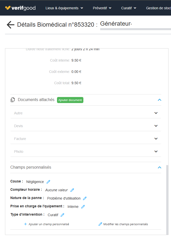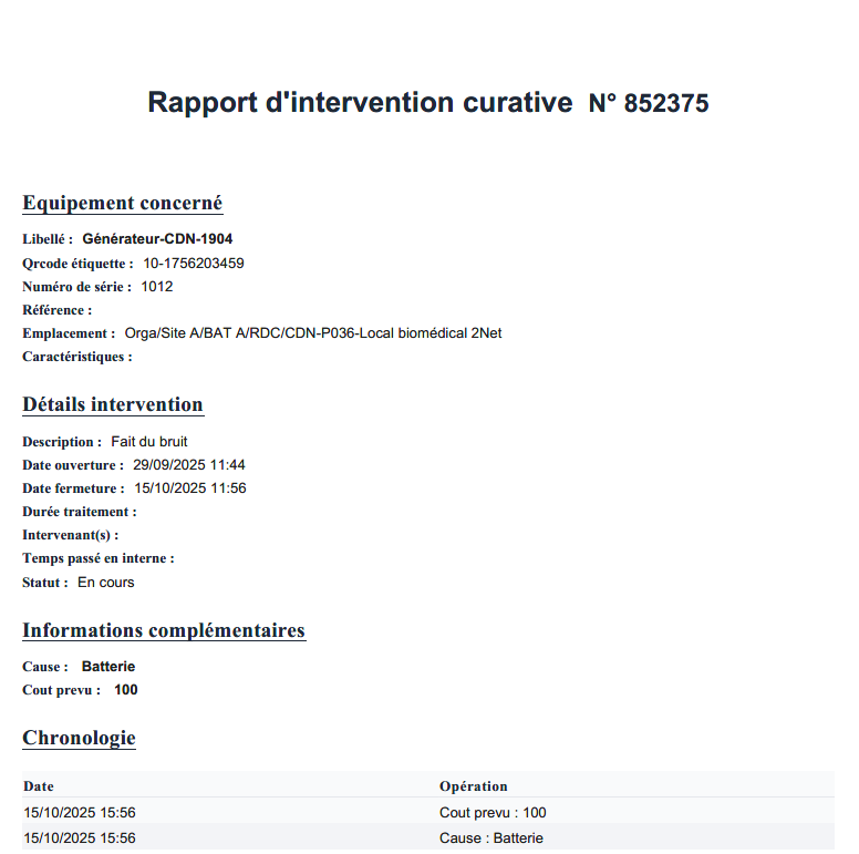 Au travers de la fonction Generer un rapport PDF, les champs personnalisés renseignés apparaissent automatiquement dans la section « Informations complémentaires » du rapport.