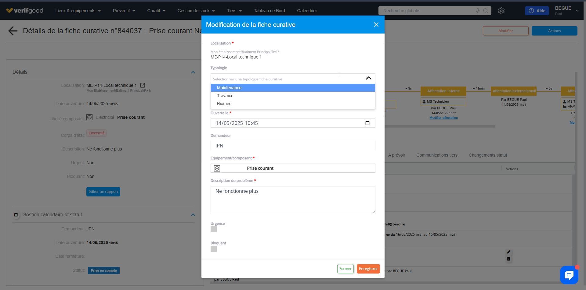 Pour passer une fiche curative en fiche travaux, vous devez simplement changer sa typologie.