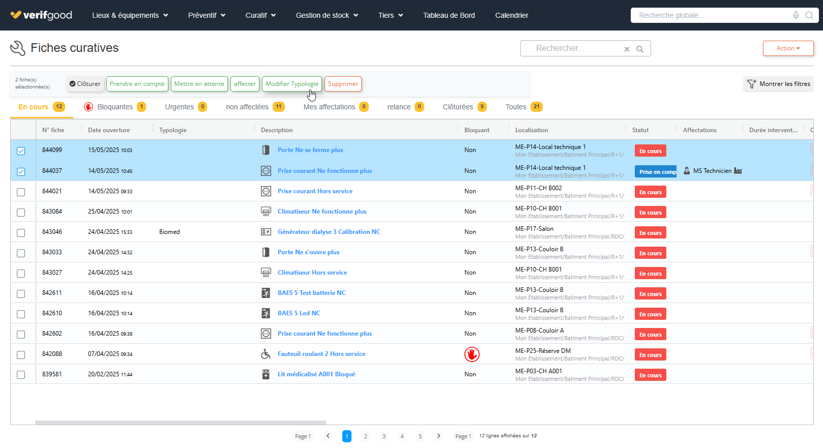 Ainsi, lors de la création d’une nouvelle fiche curative liée à un équipement ou un lieu, la typologie adéquate sera automatiquement sélectionnée.