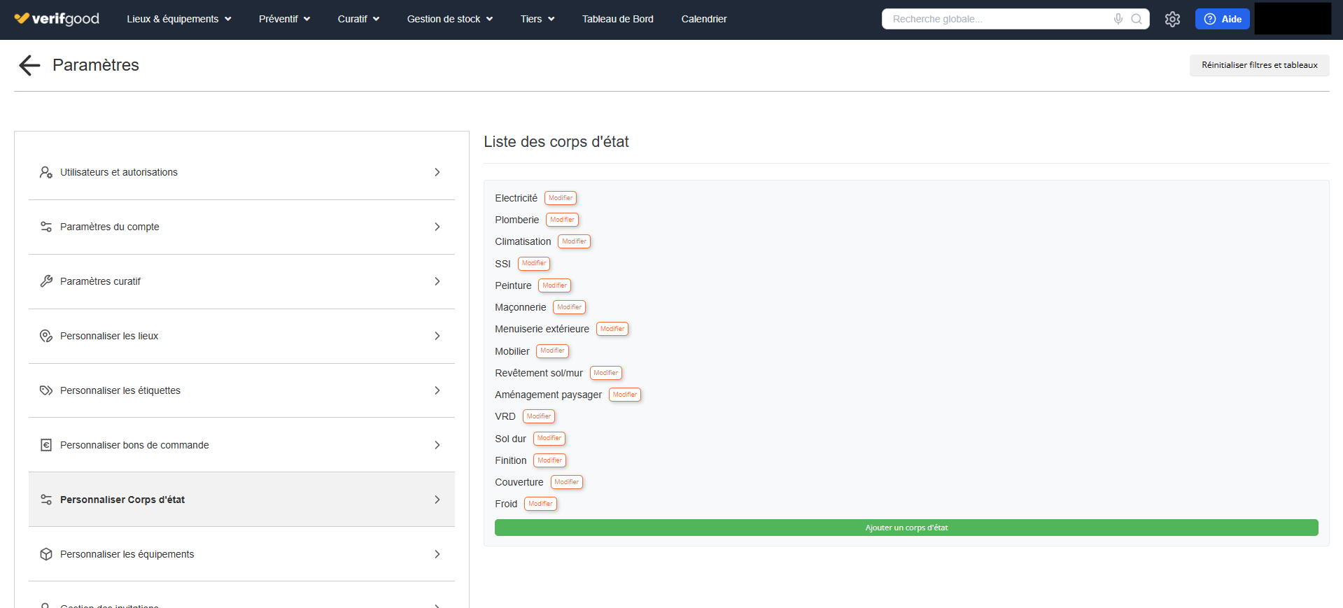 Le corps d’état est un pivot de la donnée dans Verifgood : il aligne le curatif, structure le préventif et fiabilise le reporting.